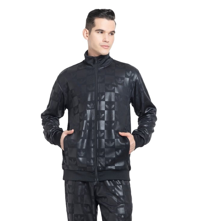 Black Regular Fit Logo Printed Sports Track Top