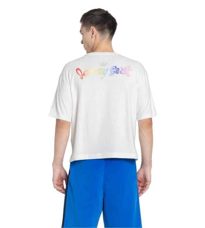 Score high on the fashion meter by wearing this white loose fit sports t-shirt from Adidas Originals. Tailored to sartorial perfection from premium quality fabric, it assures a soft and soothing touch against the skin. The round neck adds to its appeal. Exuding short sleeves, it is sure to fetch you compliments from all. It emanates a brand logo which makes it a unique choice.