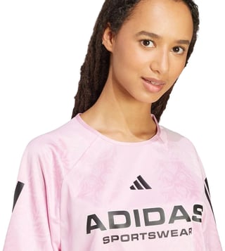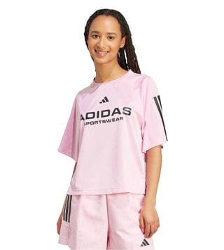 Look fashionable by donning this exquisite pink loose fit sports t-shirt from adidas. Tailored to sartorial perfection from premium quality fabric, it assures a soft and soothing touch against the skin. The round neck adds to its appeal. Exuding short sleeves, it is sure to fetch you compliments from all. It emanates a brand logo which makes it a unique choice.