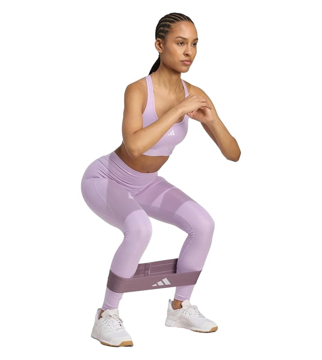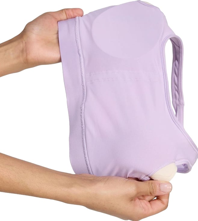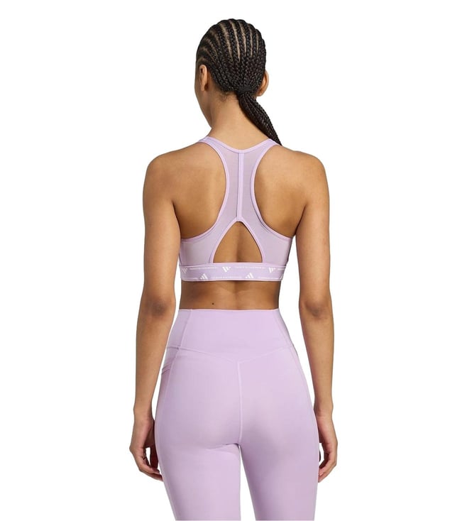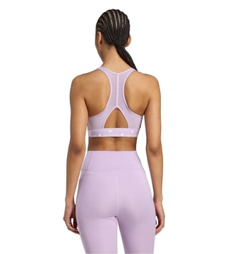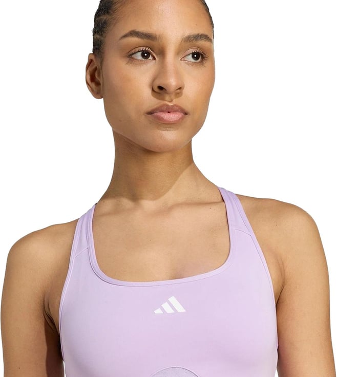Inject high-street fashion to your wardrobe with this purple tight fit sleeveless sports bra from adidas. Tailored to sartorial perfection from premium quality fabric, it assures a soft and soothing touch against the skin. The scoop neck boasts of exclusive appeal.