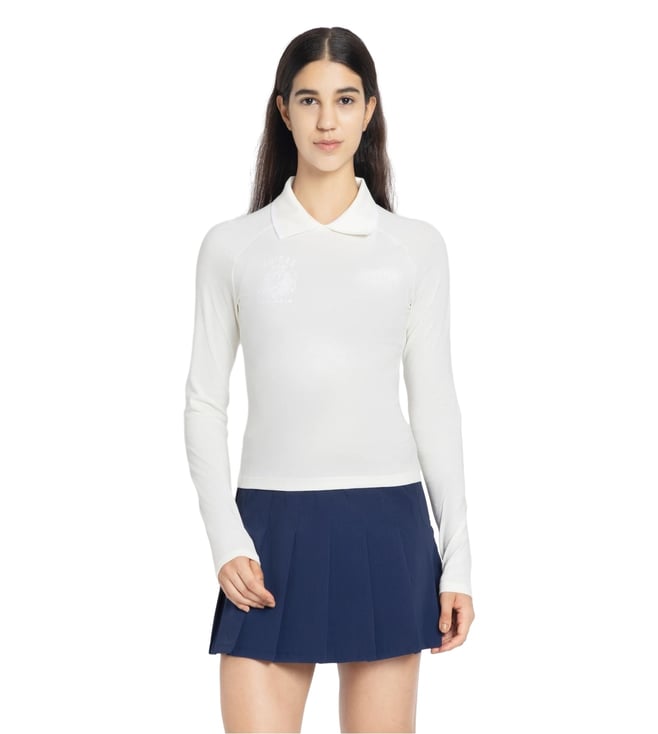 White LS CREST Sports Polo T-Shirt