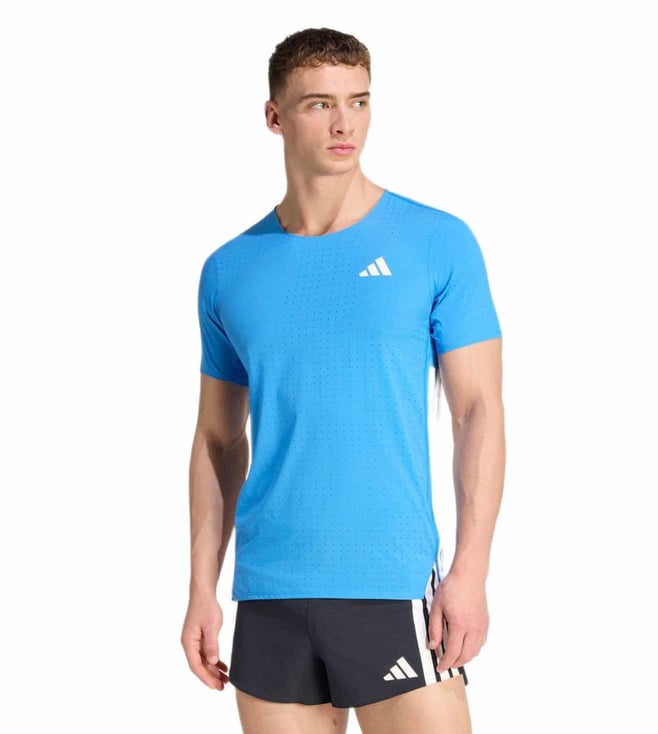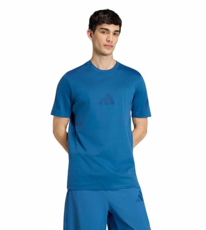 Blue Cotton Slim Fit Printed Sports T-Shirt
