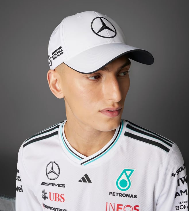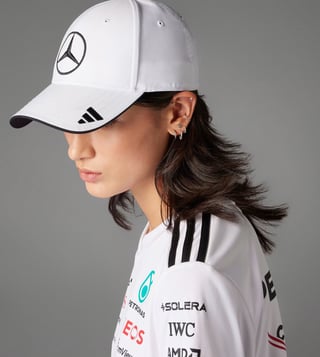 Whether you're watching trackside or not, this Mercedes-AMG Petronas Formula One Team driver cap from adidas Motorsports lets you show your support for your favourite team. An adjustable strap means one size fits most heads comfortably. The pre-curved brim keeps your eyes on the road or the race, and the logo on the front leaves no doubt about who you're cheering for. This product is made with at least 50% recycled materials. By reusing materials that have already been created, we help to reduce waste and our reliance on finite resources and reduce the footprint of the products we make.