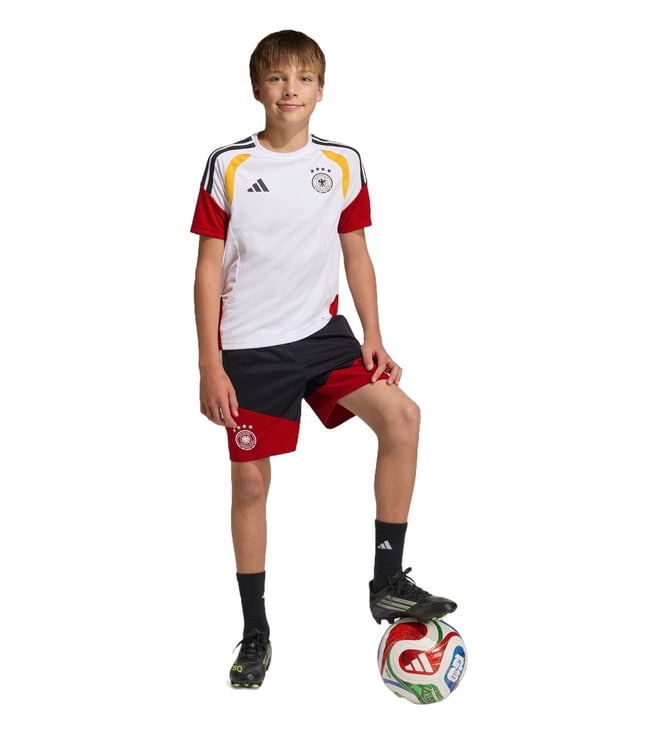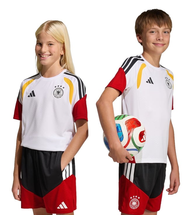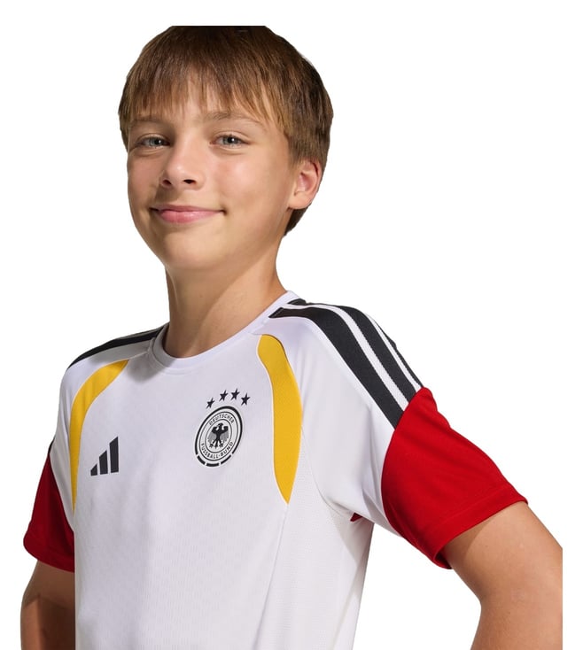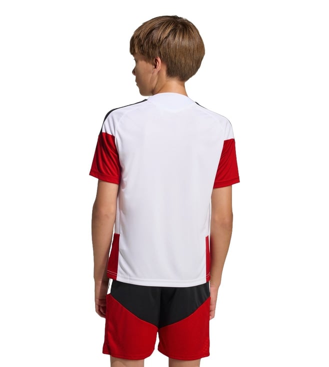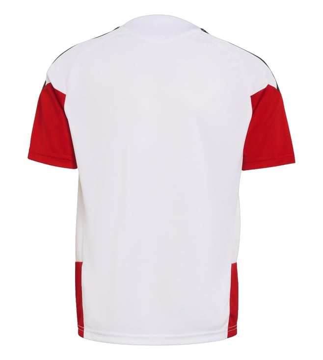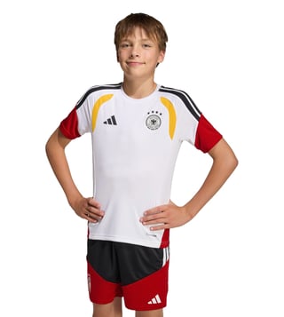 The jersey from adidas is crafted for young football enthusiasts ready for the pitch. The Climacool technology in this jersey helps young athletes stay cool, dry, and focused on their game. The adidas logo and 3 Stripes add signature definition.