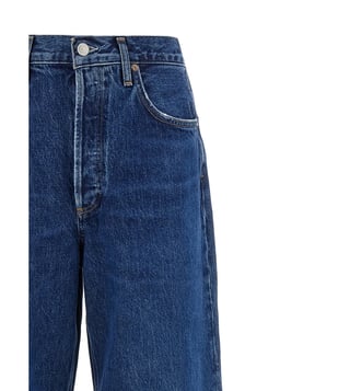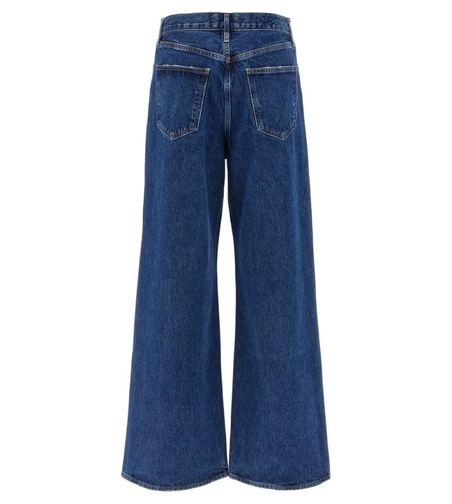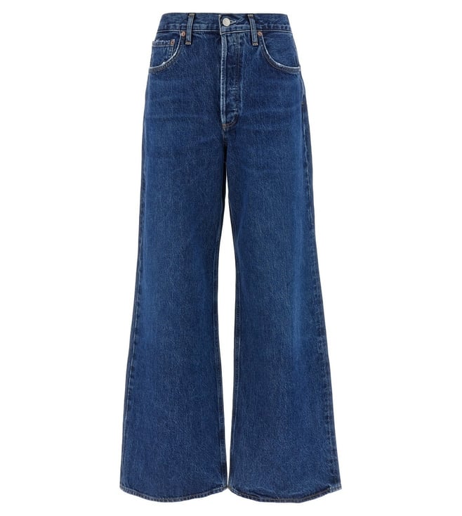 Elevate your wardrobe with the Agolde Blue Flared Jeans. Designed with dame denim jeans, medium waist model with wide leg with turn-up detail, control wash button closure. true to size fit, these trousers combine comfort and sophistication for everyday wear. Products purchased from Darveys are supported exclusively by the warranty/exchange policies of Darveys and its partner boutiques. Brand owners and their channel partners are not responsible for exchange/warranty services for items purchased through Darveys.
