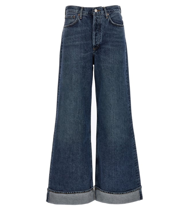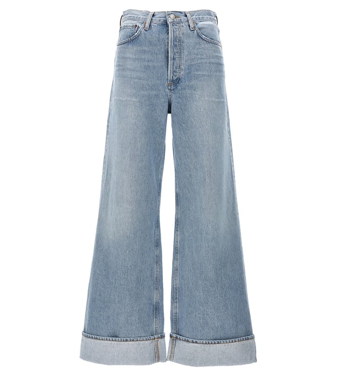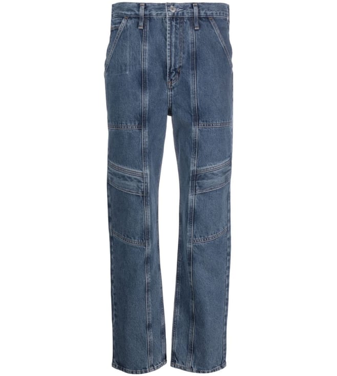 Blue Lightened Effect Lightly Washed Straight Fit Jeans