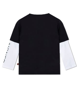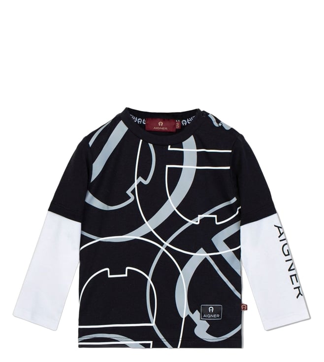 Elevate your baby boys wardrobe with the Aigner Black Graphic Logo Printed Comfort Fit T-Shirt. Crafted from 100 percent soft cotton, this tee offers unbeatable comfort while making a bold statement with its graphic logo design. Perfect for everyday wear, this t-shirt is ideal for playful days or casual outings. Add a touch of style and comfort to your little ones look with this must-have piece from Aigner.