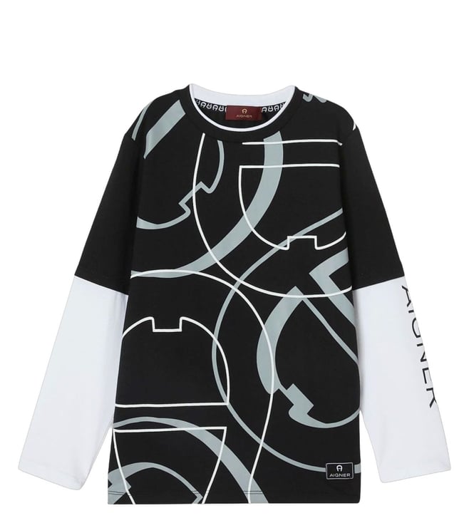 Aigner Black Graphic Logo Printed Comfort Fit T-Shirt