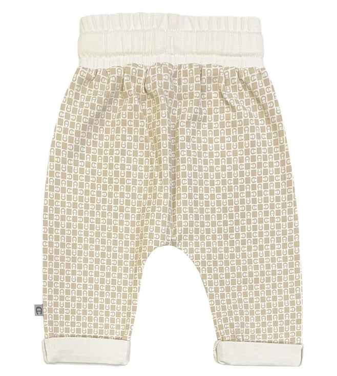 Elevate your little ones style with the Aigner Ivory Logo Printed Comfort Fit Jogger. Crafted from a soft, stretchy cotton blend, these joggers offer the perfect combination of comfort and fashion. The subtle logo print adds a touch of sophistication, while the elasticated waistband ensures a snug fit for all-day play. Ideal for both baby boys and girls, these joggers are perfect for cozy indoor play or stylish casual outings. Upgrade your little ones wardrobe with these versatile and trendy joggers from Aigner.