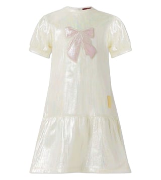 Elevate your wardrobe with the Aigner White Metallic Bow Printed Regular Fit Dress. This stunning dress combines comfort and style effortlessly with its soft cotton blend fabric and eye-catching metallic bow patch. Perfect for special occasions or adding a touch of elegance to your everyday look, this dress is sure to turn heads wherever you go. Embrace the sparkle and sophistication of this charming piece and make a statement with every wear.
