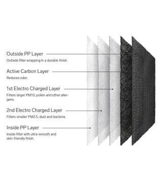 The Urban Air Filter 2.0 provides superior protection against harmful particles in the air. The multi-layer filter technology is tested in world-class Swedish laboratory (RISE) with results showing 98% filtering efficiency against particles down to 0.3?m in size. The filter is available in 4 sizes and each filter pack contains 3 replaceable filters.
