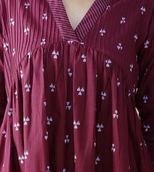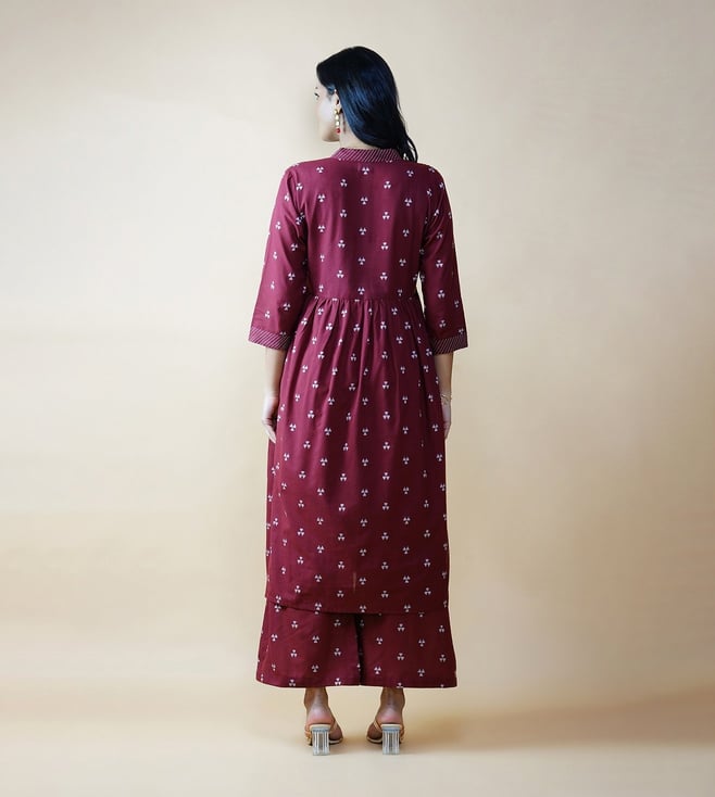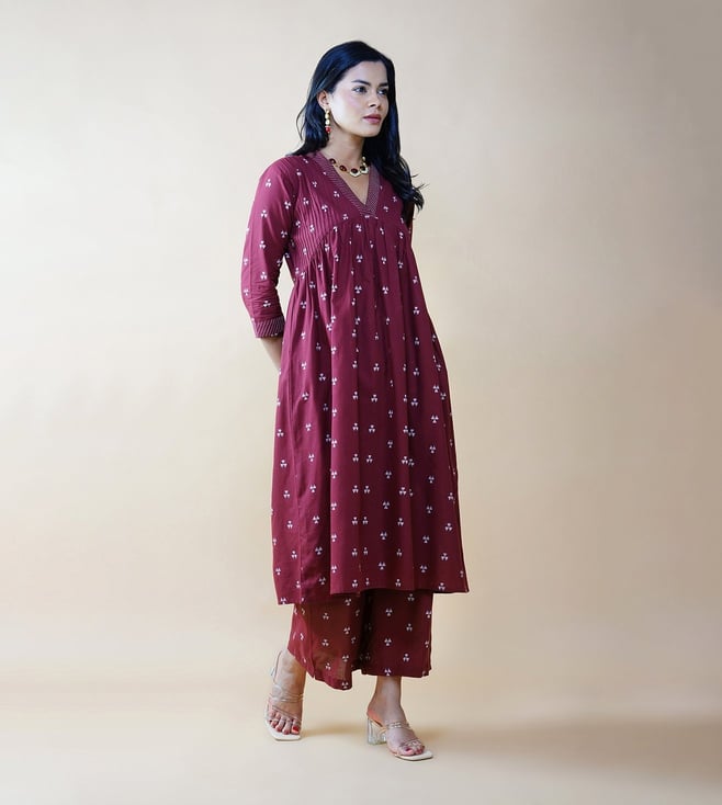 Akiso Maroon Cotton Printed 3/4Th Sleeve Suit Set