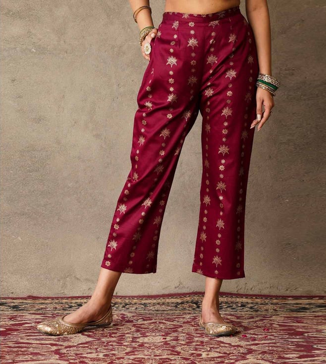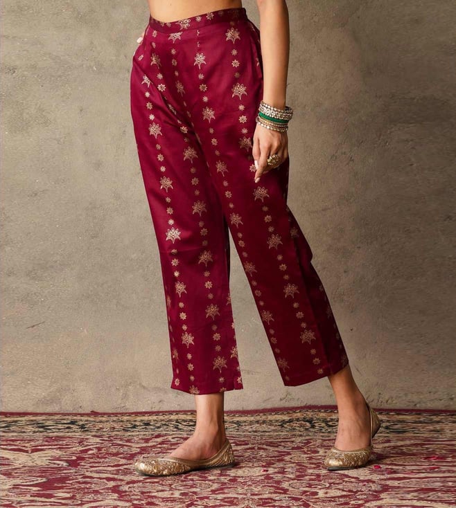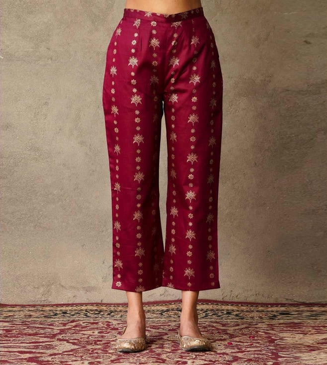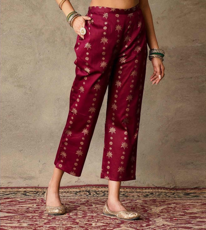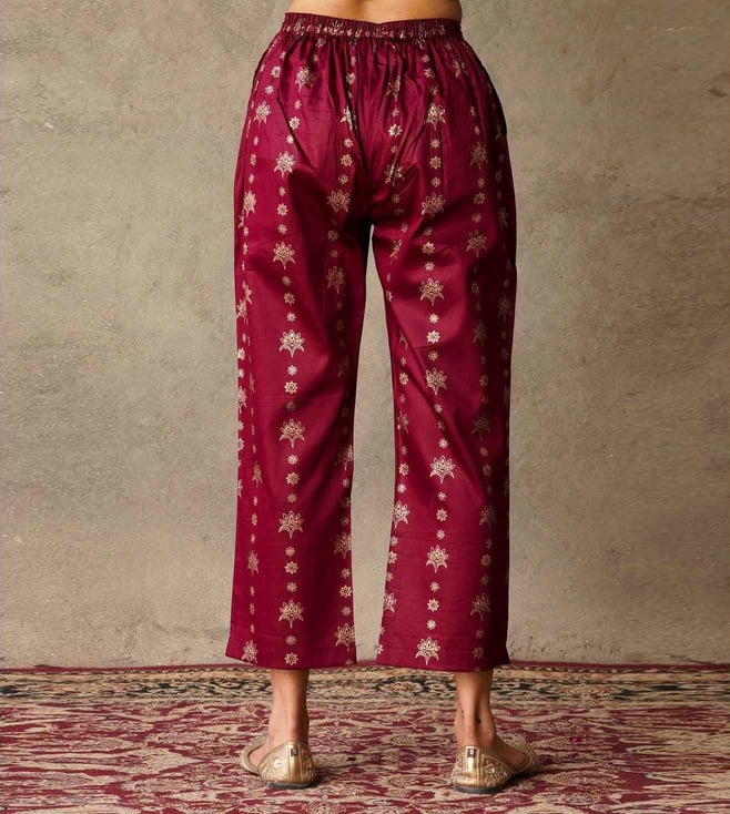 Akiso Plum Parv Block Printed Cotton Straight Pants