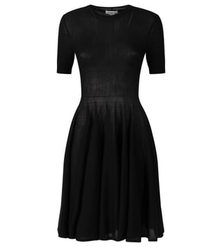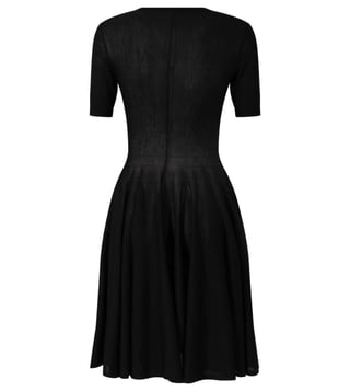Embrace timeless elegance with this exquisite black dress, crafted from 100% wool for a luxurious feel. Its solid pattern exudes sophistication, while the short sleeves and round neck offer a classic silhouette perfect for any occasion. The dress drapes beautifully, highlighting the natural grace of the wearer. Designed for the modern woman, it combines comfort with style, making it an essential addition to any wardrobe. Whether for a formal event or a casual outing, this dress is a versatile masterpiece.