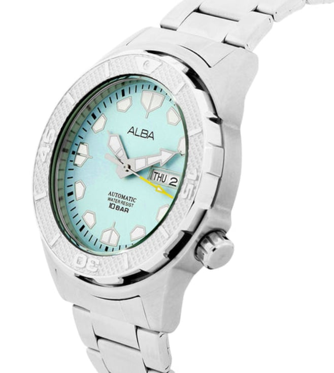 Add a stylish dimension to your look by wearing this men's analog watch watch from the by ALBA. The blue round dial is protected by a mineral glass. The stainless steel strap comes in a silver hue that further elevates the look of the timekeeper. Besides, it is completed with a fold-over clasp with double push button safety clasp to ensure a secure fit on the wrist.