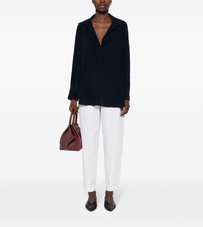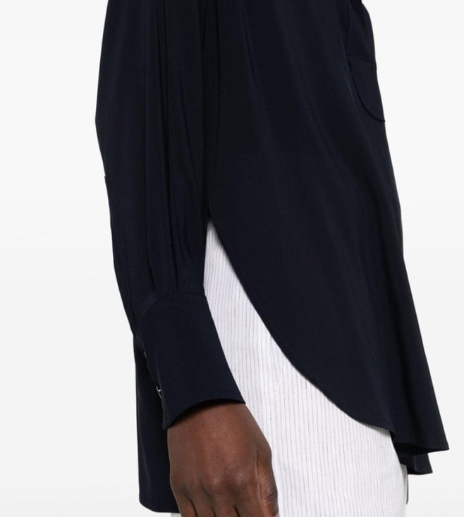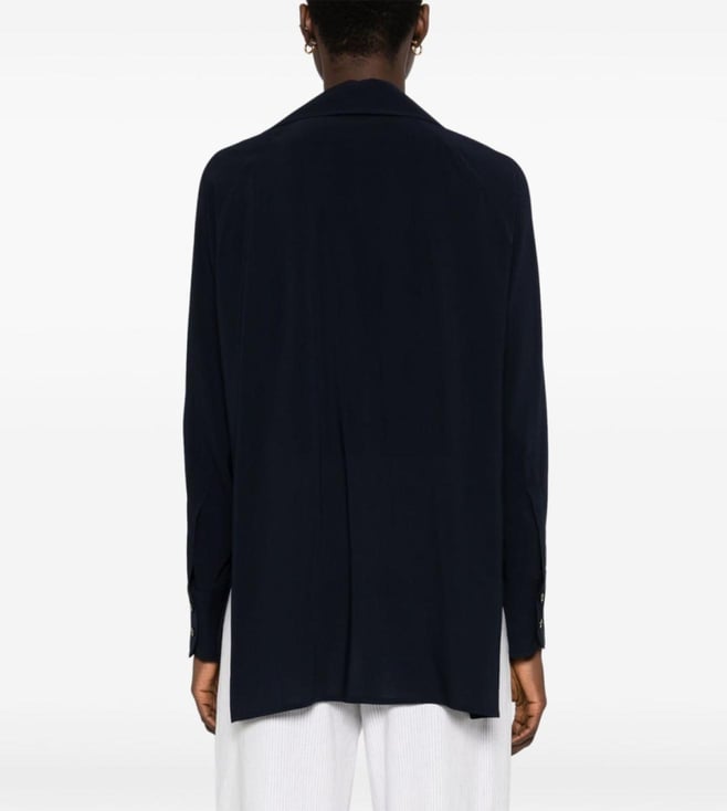The Alberto Biani Navy Blue Georgette Blouse is a sophisticated blend of elegance and comfort, tailored for the modern woman. Crafted from a luxurious mix of 94% Viscose and 6% Spandex, this blouse offers a regular fit that drapes beautifully, enhancing your silhouette. Its deep navy hue exudes timeless charm, while the subtle sheen of the fabric adds a touch of glamour. Designed with a classic closure, this blouse is perfect for both professional settings and evening outings, making it a versatile wardrobe staple.