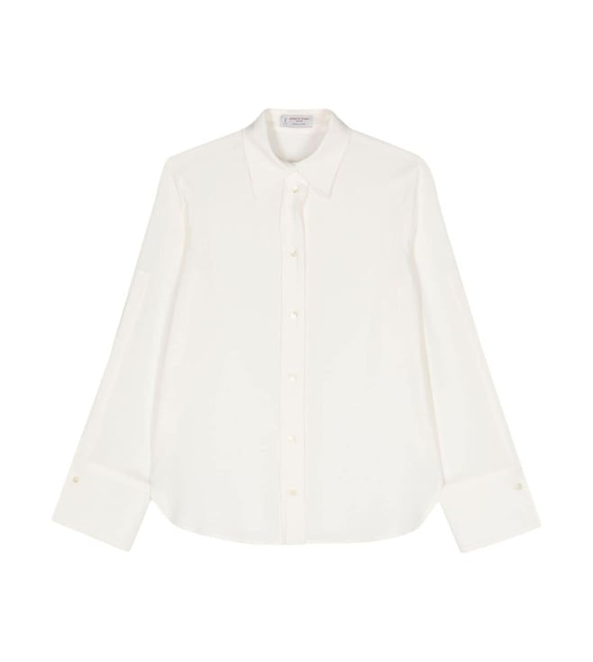 Elevate your wardrobe with this elegant white casual shirt, crafted from a luxurious blend of 70% triacetate and 30% polyester. Its solid pattern exudes timeless sophistication, while the long sleeves and classic shirt collar offer a refined silhouette. Designed for the modern woman, this shirt features a sleek closure that ensures a perfect fit. Whether paired with tailored trousers or your favorite jeans, this versatile piece promises to be a staple in your collection, effortlessly blending comfort with style.