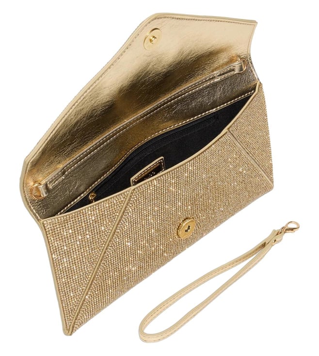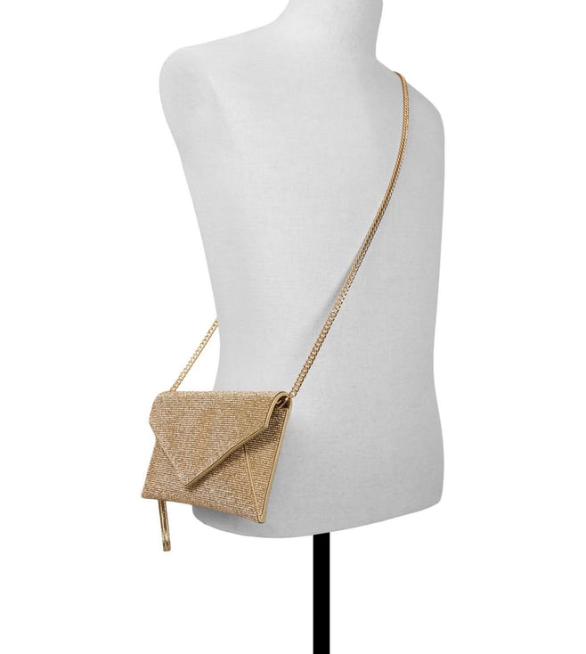 Introducing the KELCHI clutch by ALDO, crafted from premium synthetic in a stylish golden finish. Designed with removable chain strap and wristlet, this bag offers both elegance and practicality. Ideal for casual outings, it's perfect for modern women who value both style and function.