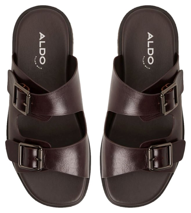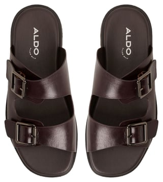 Elevate your summer style with ALDO mens KYROA Brown Slide Sandals. Crafted with quality materials, these sandals offer both durability and comfort for all day wear. The sleek design and versatile Brown color make them perfect for any outfit, from casual to dressy. Slip into these sandals and experience the perfect blend of fashion and function. Whether youre lounging by the pool or exploring the city, the ALDO mens KYROA Brown Slide Sandals are the ideal choice for the modern man on the go.