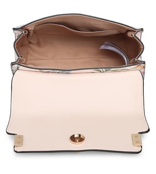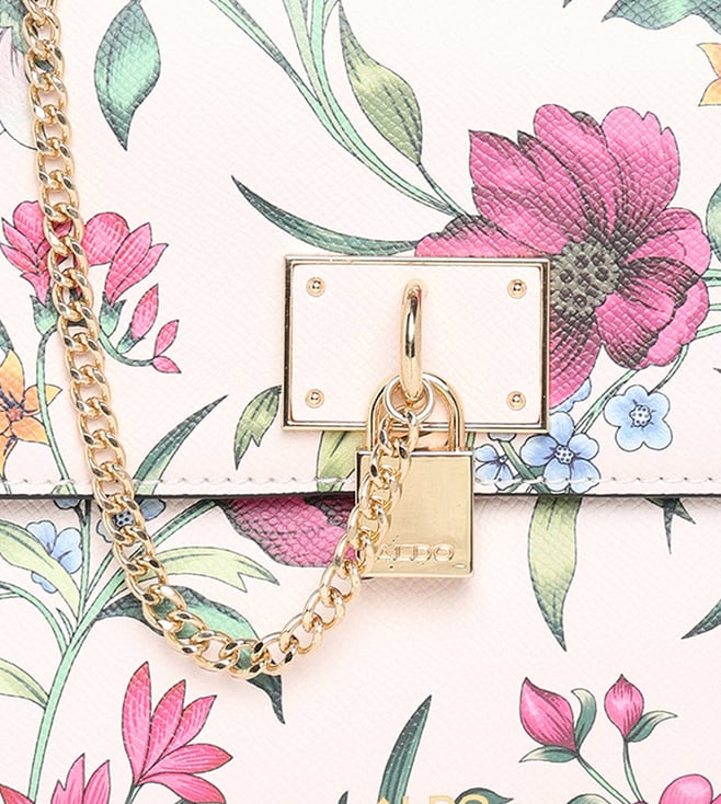 Make your outdoors all the more fun and fashionable with this women's satchel from ALDO. It features a snap closure and a printed pattern for added attraction. Exuding an urbane feel, it is detailed with compartments and pockets to accommodate daily essentials in a safe manner. Made of premium quality synthetic for durability, this multicolor satchel has a removable strap for carrying comfort.
