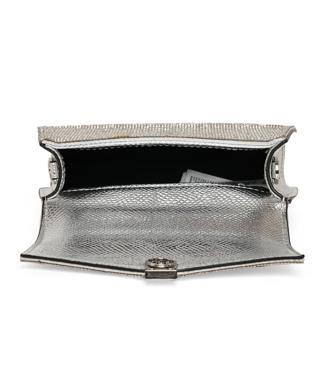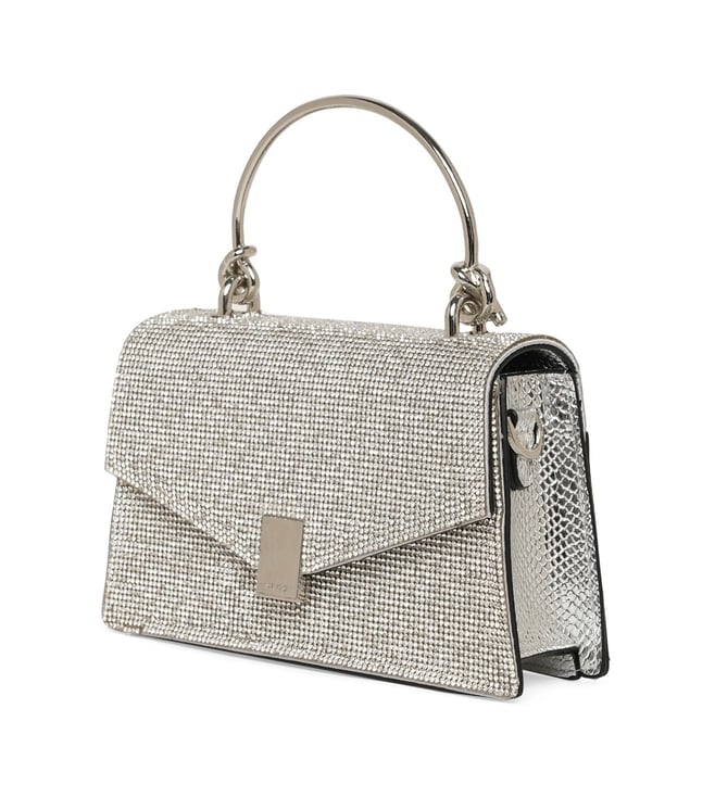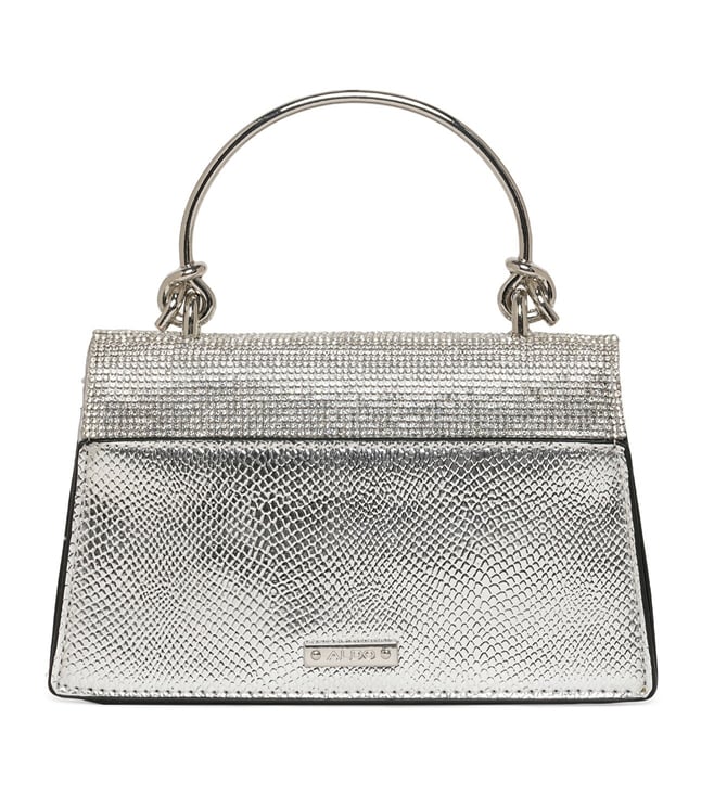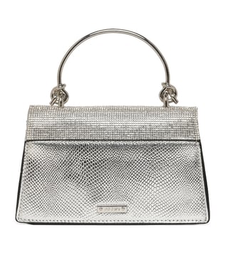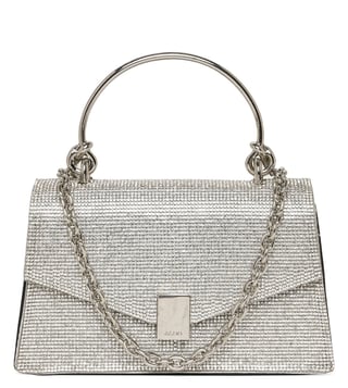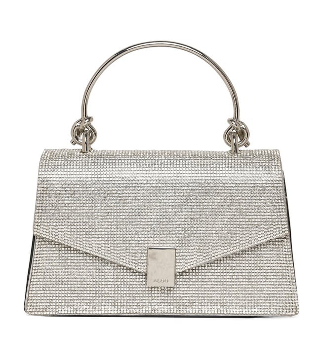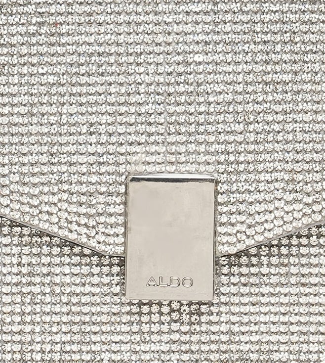 Swell up the collection of your accessories in a trendy way with this women's satchel from ALDO. When just a touch of glam is all you need, this Mirama shoulder bag with rhinestone detailing and classic front flap design is that to die-for look we all want on this arm. Made of premium quality synthetic for durability, this silver satchel has a removable strap for carrying comfort.