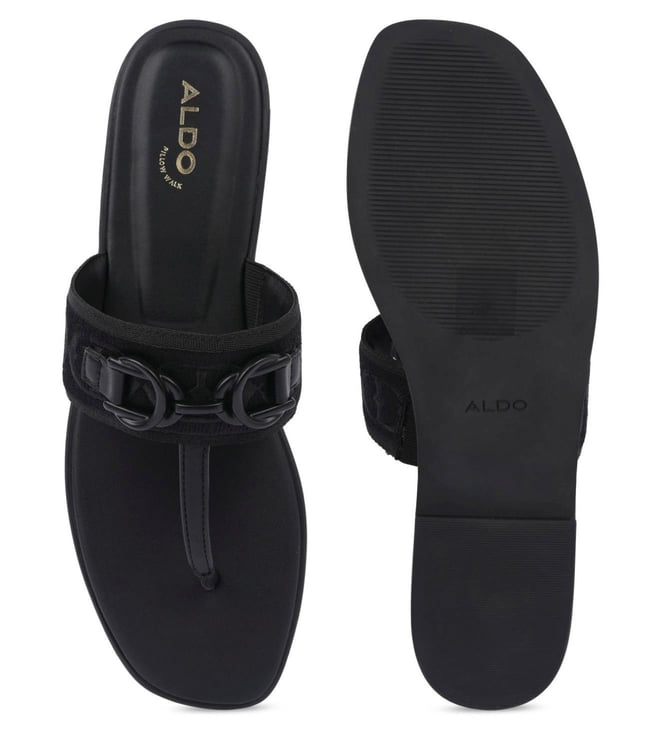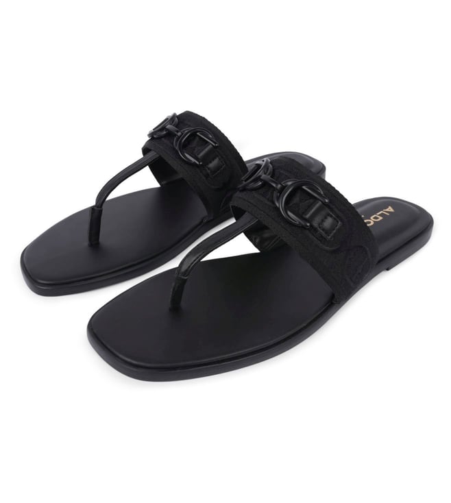 Elevate your everyday look with Aldo womens CORALYNNAA black t strap sandals. Effortlessly stylish and comfortable, these sleek flat sandals are perfect for any occasion. Whether you are running errands, meeting friends for brunch, or enjoying a casual outing, the modern elegance and ease of these sandals make them a versatile wardrobe staple. Slip them on and step out in confidence with Aldo CORALYNNAA sandals.