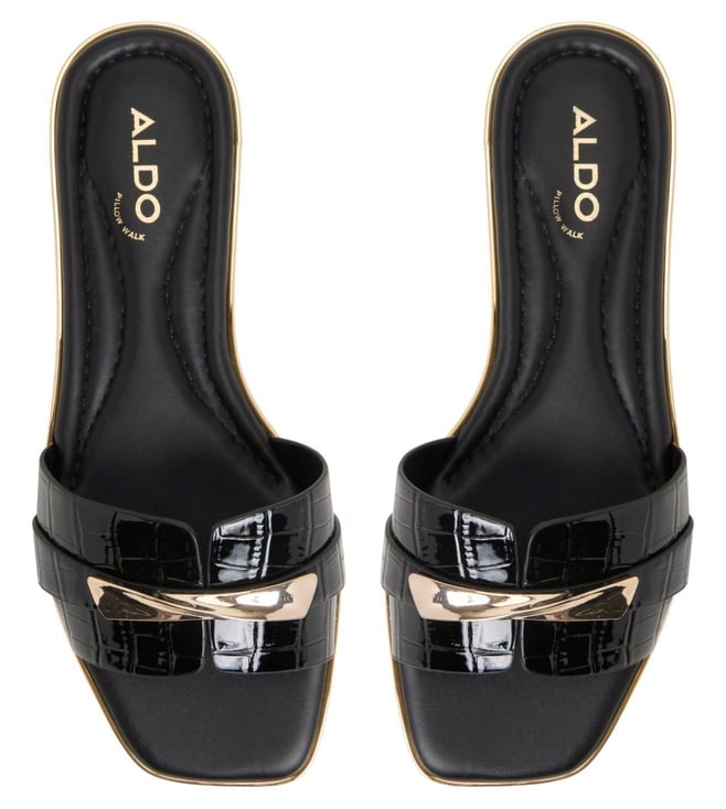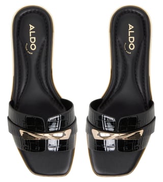ALDO Women's DARLINA Black Slide Sandals (Animal Attack)