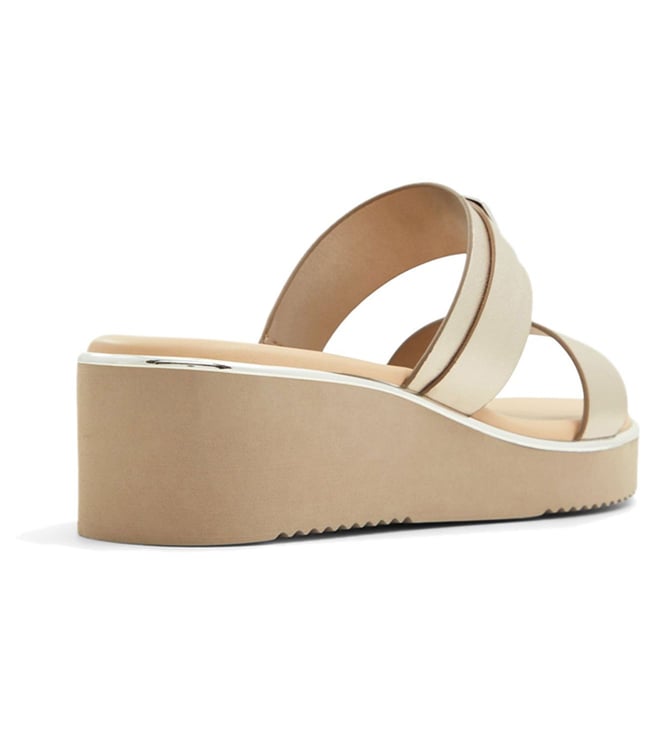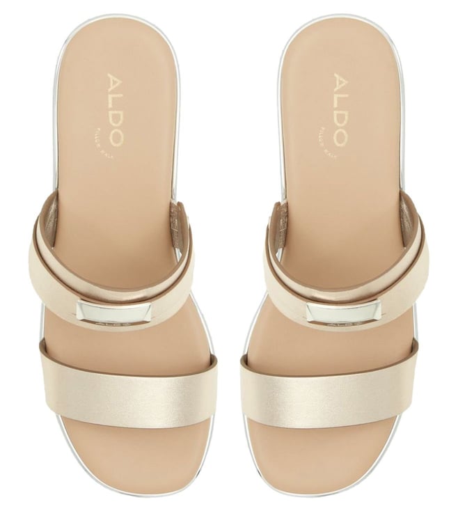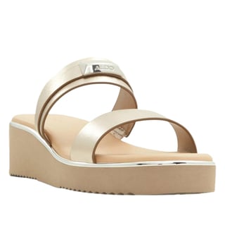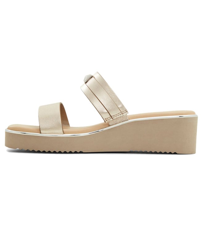 Elevate your summer style with ALDO Womens FOURTH Silver Slide Wedges. These chic and versatile Wedges are perfect for any occasion, from beach days to brunch outings. The metallic gold finish adds a touch of glamour to your look, while the comfortable slide design ensures all day wearability. With their timeless appeal and effortless elegance, these Wedges are a must have addition to your footwear collection. Step into summer in style with ALDO Womens FOURTH Silver Slide Wedges.