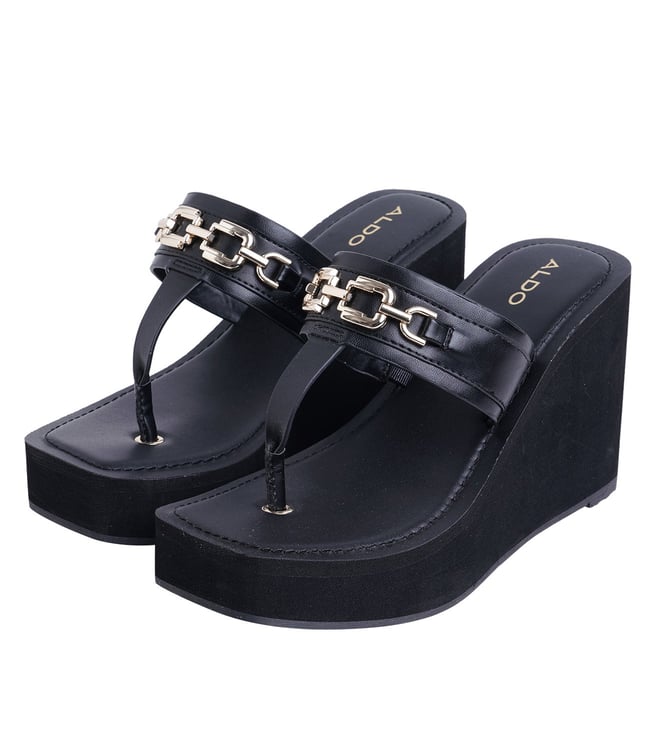 ALDO Women's IBARAKI001 Black T-Strap Wedges