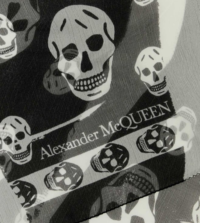 Skull scarf by alexander mcqueen, iconic all-over contrasting printed skull logo, iconic brand signature on the sides. Length: 120 cm height: 104 cm. Products purchased from Darveys are supported exclusively by the warranty/exchange policies of Darveys and its partner boutiques. Brand owners and their channel partners are not responsible for exchange/warranty services for items purchased through Darveys.