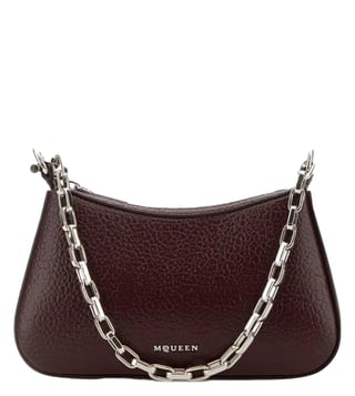 Alexander McQueen Maroon T-Bar Textured Leather Shoulder Bag