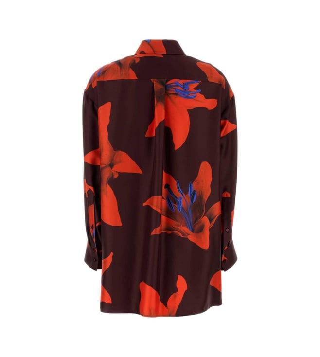 Elevate your wardrobe with this exquisite red casual shirt, a masterpiece of elegance and comfort. Crafted from 100% pure silk, it drapes luxuriously, offering a soft, smooth touch against the skin. The vibrant red hue is adorned with an intricate printed pattern, adding a touch of artistic flair. Featuring long sleeves and a classic shirt collar, it exudes timeless sophistication. The button closure ensures a perfect fit, making it an ideal choice for both casual outings and chic gatherings.