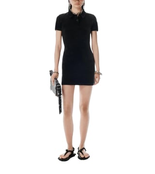 Embrace timeless elegance with this chic black dress, crafted from a luxurious blend of 88% cotton, 10% polyamide, and 2% elastane. Its solid pattern exudes sophistication, while the short sleeves and classic shirt collar add a touch of modern flair. Designed for the contemporary woman, this dress offers a flattering silhouette with its expertly tailored fit. The subtle stretch in the fabric ensures comfort and ease of movement, making it perfect for any occasion where style and grace are paramount.