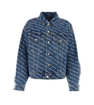 The Alexander Wang Blue Printed Jacket is a bold fusion of urban edge and high fashion. Crafted from premium fabric, it features an intricate, abstract print in varying shades of blue, reminiscent of a dynamic cityscape at dusk. The jacket's sleek silhouette is accentuated by sharp tailoring, while its modern, oversized fit offers a nod to streetwear aesthetics. With its statement-making design, this jacket effortlessly elevates any ensemble, making it a must-have for the fashion-forward individual.