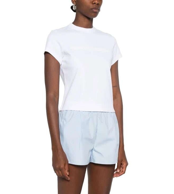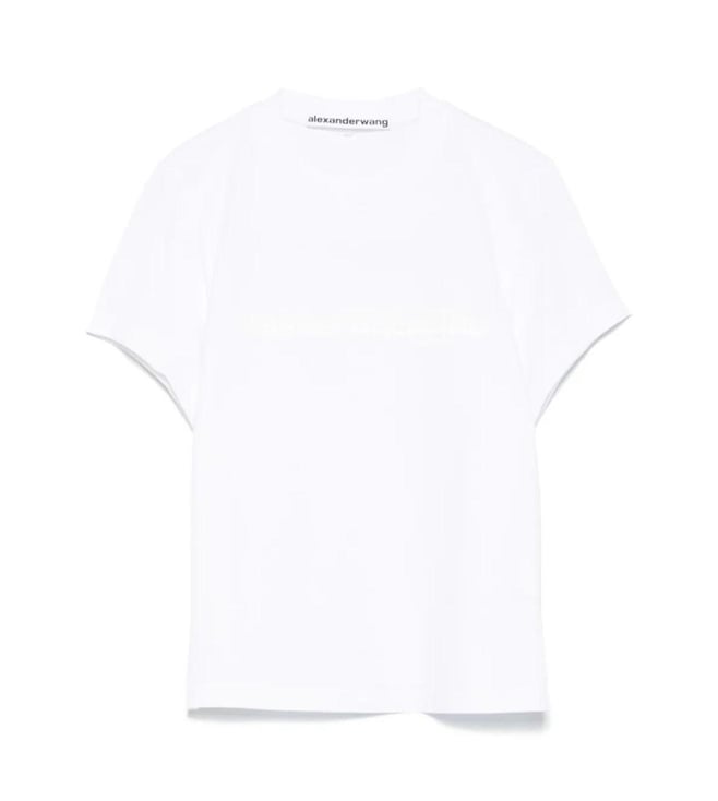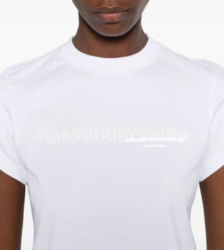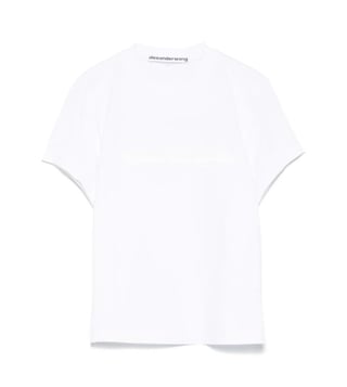 The Alexander Wang White Cotton Shrunken Logo Tee is a chic staple for the modern wardrobe. Crafted from 100% cotton, this tee offers a regular fit that flatters effortlessly. Its pristine white hue serves as a versatile canvas, while the subtle logo detail adds a touch of designer flair. The tee's minimalist design is perfect for layering or wearing solo, making it a go-to piece for any occasion. Ideal for women who appreciate understated elegance, this tee combines comfort with contemporary style.