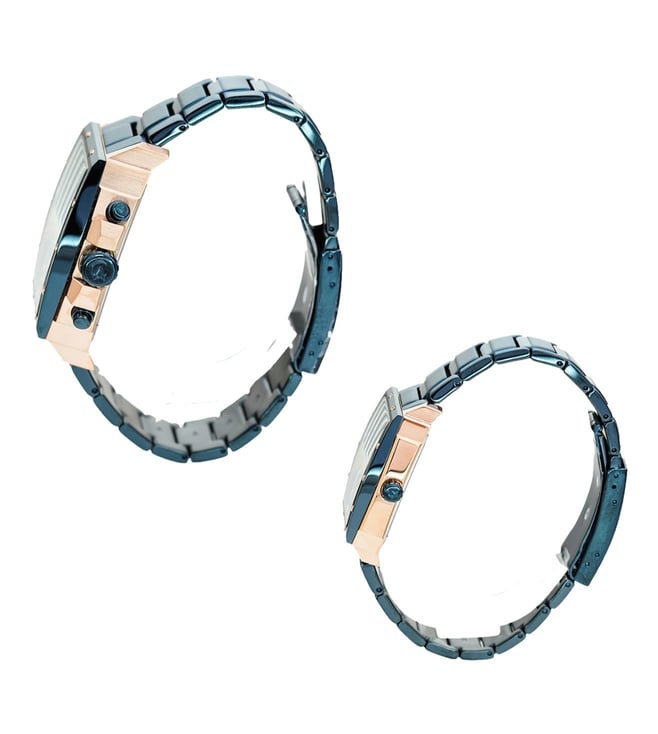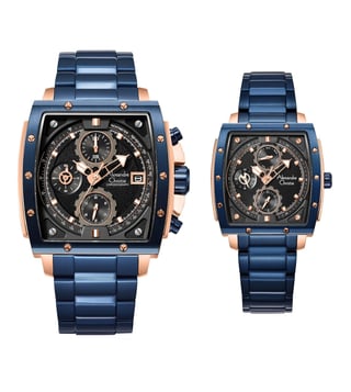 The Alexandre Christie 6376 MCBF celebrates the harmony of strength and elegance a statement couple's chronograph set designed for those who move together with purpose.Its angular case architecture, accented with exposed screws and contrasting metal tones, captures both bold masculinity and refined grace. The chronograph dial mirrors precision engineering, while the matching silhouette in the women's design reflects timeless sophistication.