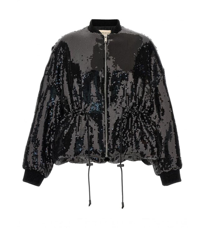 Black Sequin Bomber Embellished Relaxed Fit Jacket