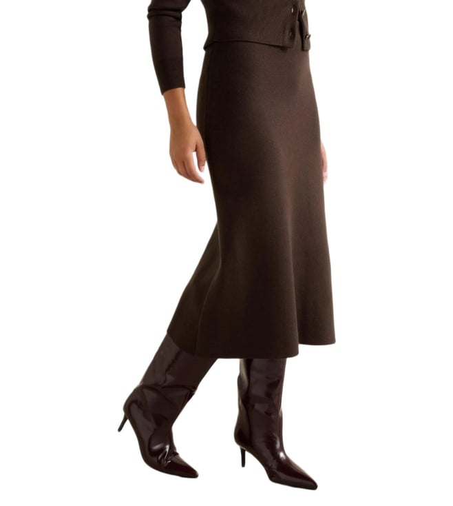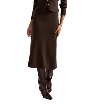 Elevate your wardrobe with the Forever New Ally Knitted Midi Skirt, a perfect blend of feminine glamour and trending style. Crafted with quality in mind, this cozy knit skirt features a fitted waist, elastic waistband, and a slight A-line silhouette for a flattering fit. With a versatile slip-on style and a length of 82cm, this skirt is perfect for every occasion. Update your look with this must-have piece that will take you from season to season effortlessly.