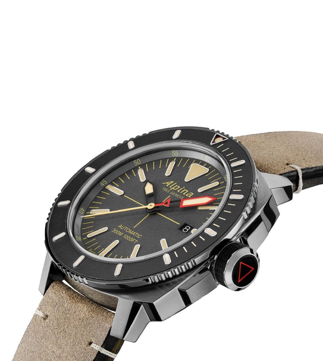 The Alpina Seastrong watch carries the legacy left by the 10 Seastrong. Perfecting the characteristics of a diving watch, the Alpina Seastrong is equipped with a triangular index marker at 12 o'clock. Taking its cues from the original Seastrong, the Heritage series is equipped with two crowns with a vintage-inspired dial. The addition of the unidirectional rotating bezel makes the Alpina Seastrong a typical diver's watch. A unidirectional rotating bezel is used in measuring the time taken for a particular dive. Whereas, the water-resistant capacity of 300 m offers ease of exploring deep seas.