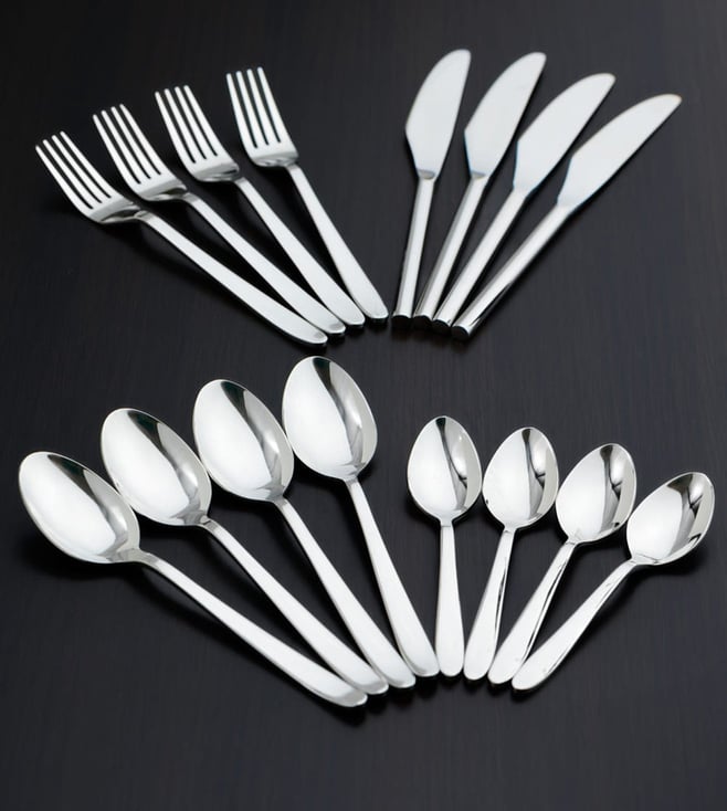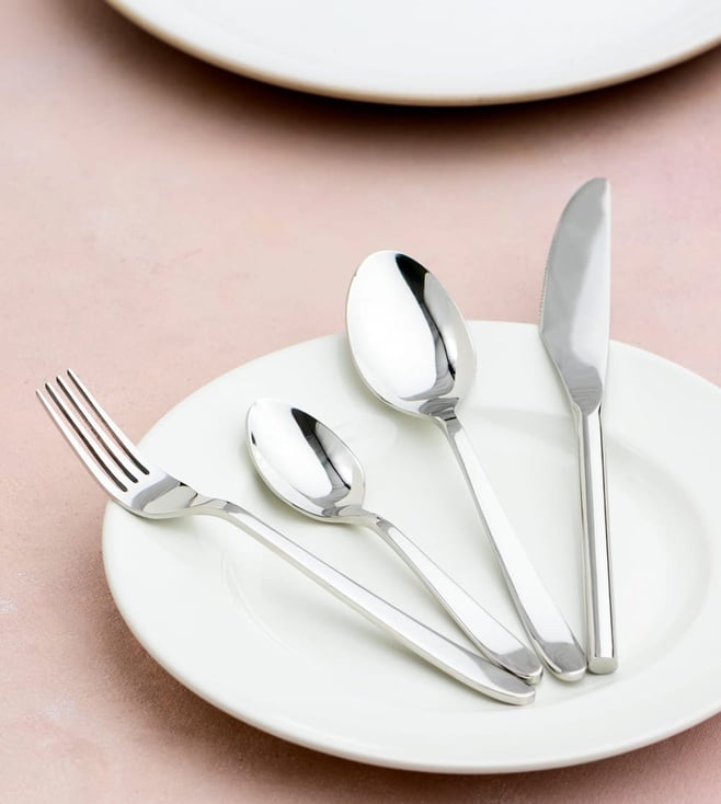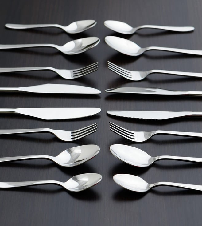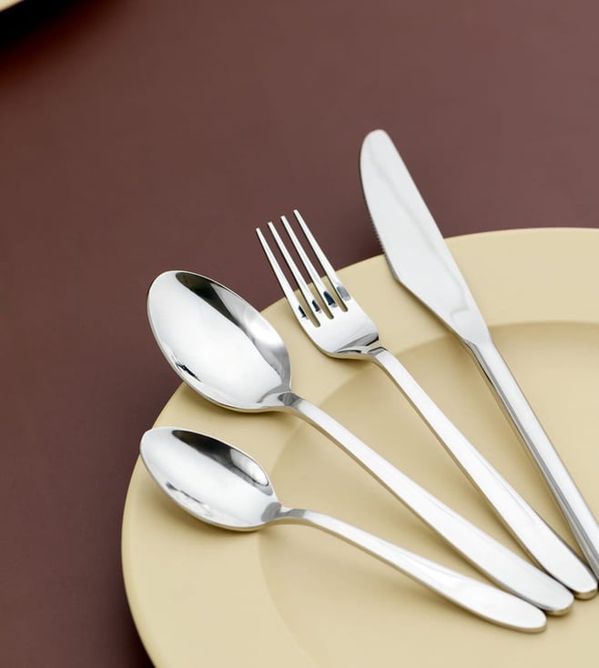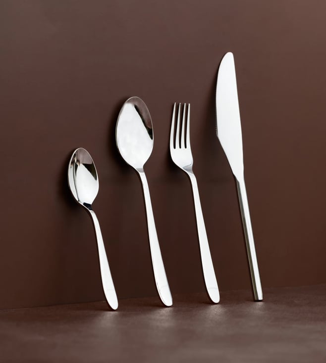 Bring the sophistication of fine silver cutlery to your dinner table with Amalfiee Aaroha Premium Silver Cutlery Set. Crafted from stainless steel, each piece is finished with a lustrous shine to give a classic look. This set contains 48 pieces, enough to serve up to 8 people. The perfect addition for your home sets to give your special occasions an extra sparkle. Disclaimer: All other items in the image are only for display purposes and will not be a part of the delivery content. Product colour may slightly vary due to photographic lighting sources. Country of Origin - India.