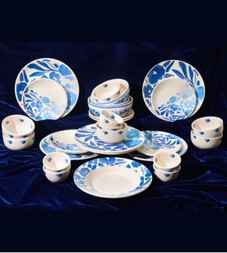 The Amalfiee Blue Ivory Ceramic Dinner Set of 21 pcs is perfect for all occasions at home. Made from high-quality ceramics in white and blue. Get yours today!' Disclaimer: All other items in the image are only for display purposes and will not be a part of the delivery content. Product colour may slightly vary due to photographic lighting sources. Country of Origin - India.