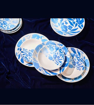 Create an elegant dining experience at home with Amalfiee's Blue Ivory Ceramic Dinner Set. This set includes 28 pieces of white and blue ceramic ware, perfect for any occasion. Made with high-quality materials, this set is perfect for both everyday use and special occasions.' Disclaimer: All other items in the image are only for display purposes and will not be a part of the delivery content. Product colour may slightly vary due to photographic lighting sources. Country of Origin - India.