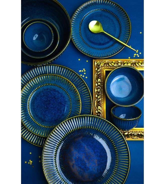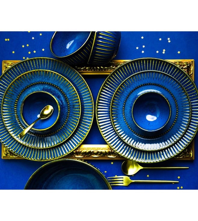 Amalfiee Blue Mehran Gold Rimmed Massive Ceramic Dinner Set of 82pcs