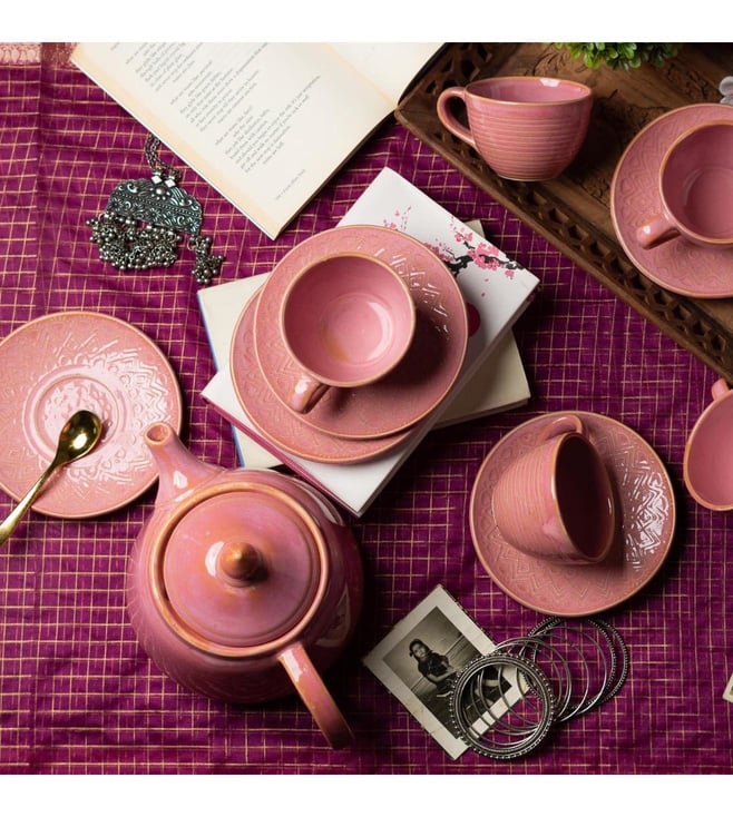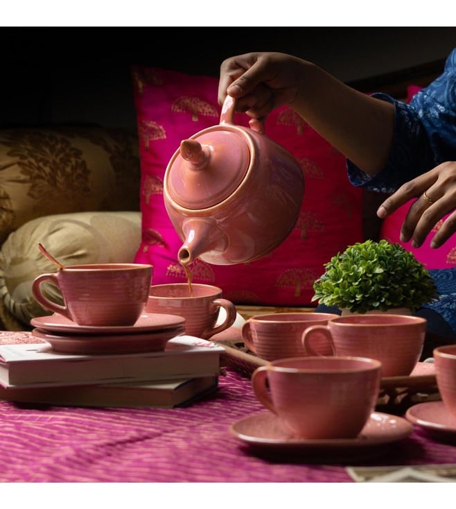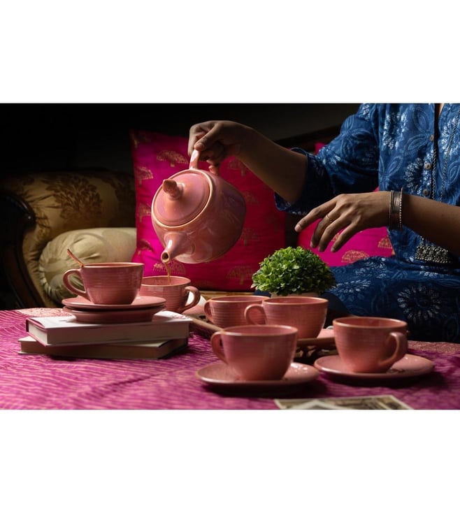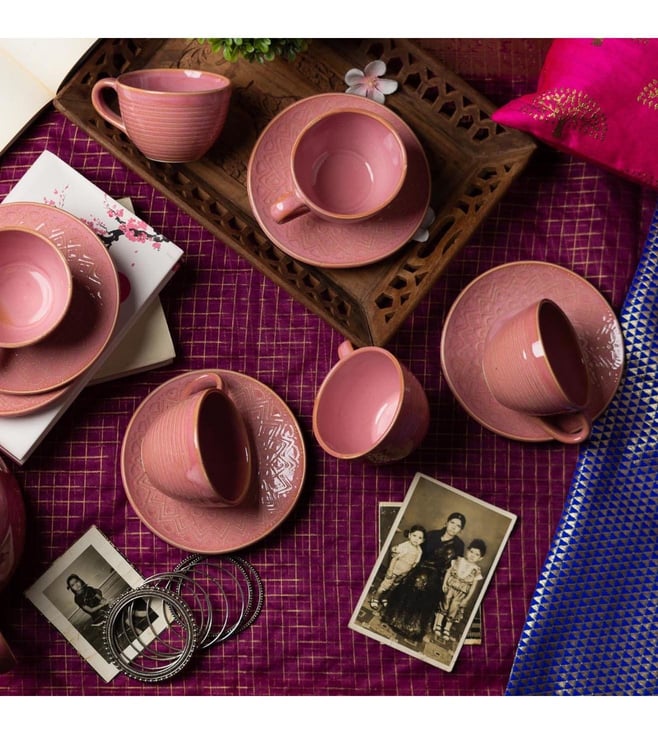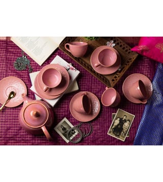 Keeping the vintage feel of the heritage architecture in heart, an alluring symphony of refreshing Miami vibes with a luscious blend of art and nature has been created. Inspired by the freshness of beaches, this cup and saucer set has the combined enchanting charm and beauty of vintage architecture with motifs from the walls of Miami. Enjoy dining with this alluring Miami-themed collection. It comes in a set of 4. It has been made using ceramic. Disclaimer: All other items in the image are only for display purposes and will not be a part of the delivery content. Country Of Origin - India.