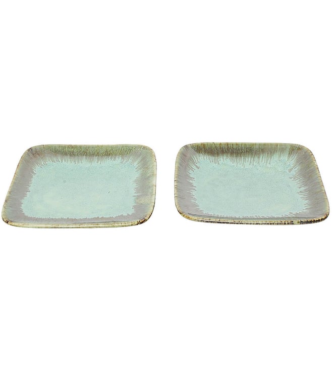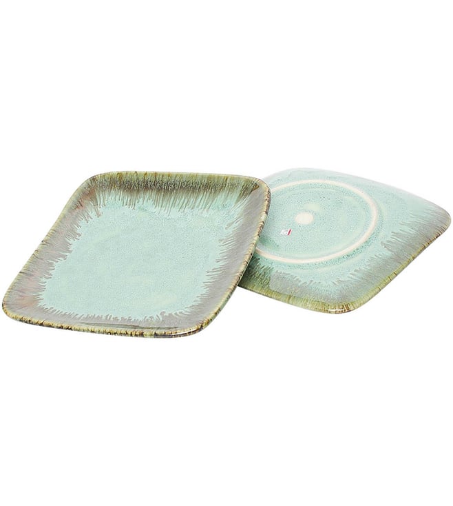 Amalfiee Mint Green Ceramic Peppermint Square Serving Tray - Set of 2