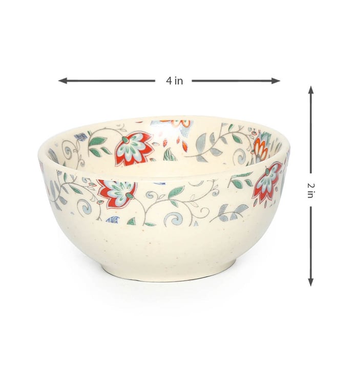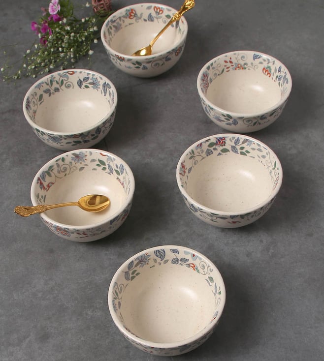 Serve your favorite desserts or dips or chutney in this organic multicolor floral soup bowl set from Amalfiee. Pair it up with their Neelkamal serving bowls and cups set and give your tableware a unique touch of elegance and authenticity. It comes with set of 6. Disclaimer: All other items in the image are only for display purposes and will not be a part of the delivery content. Product color may slightly vary due to photographic lighting sources.