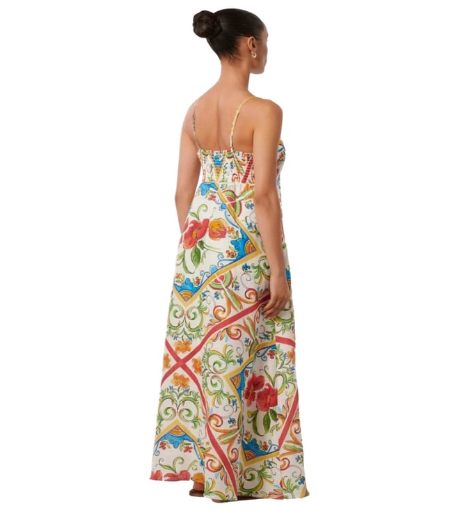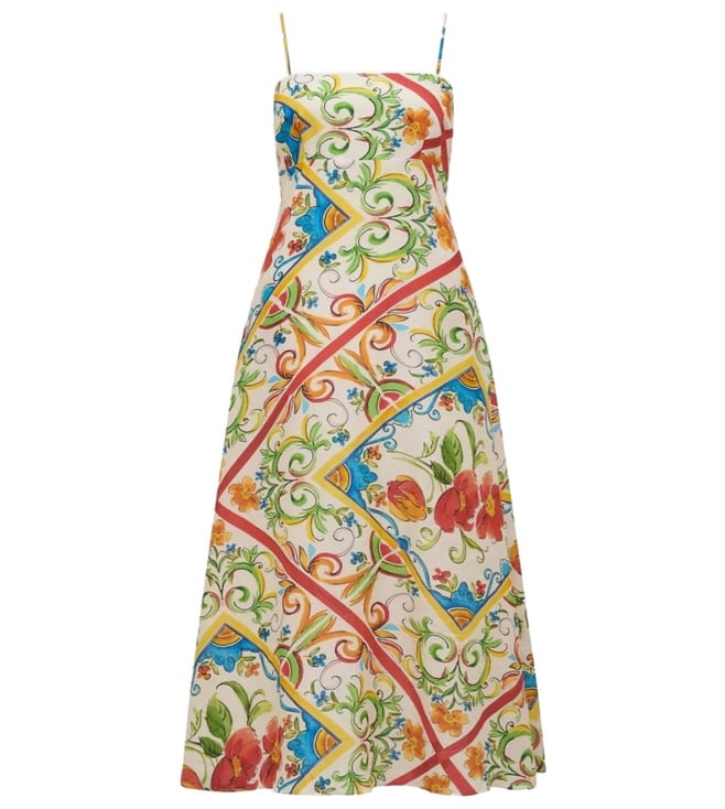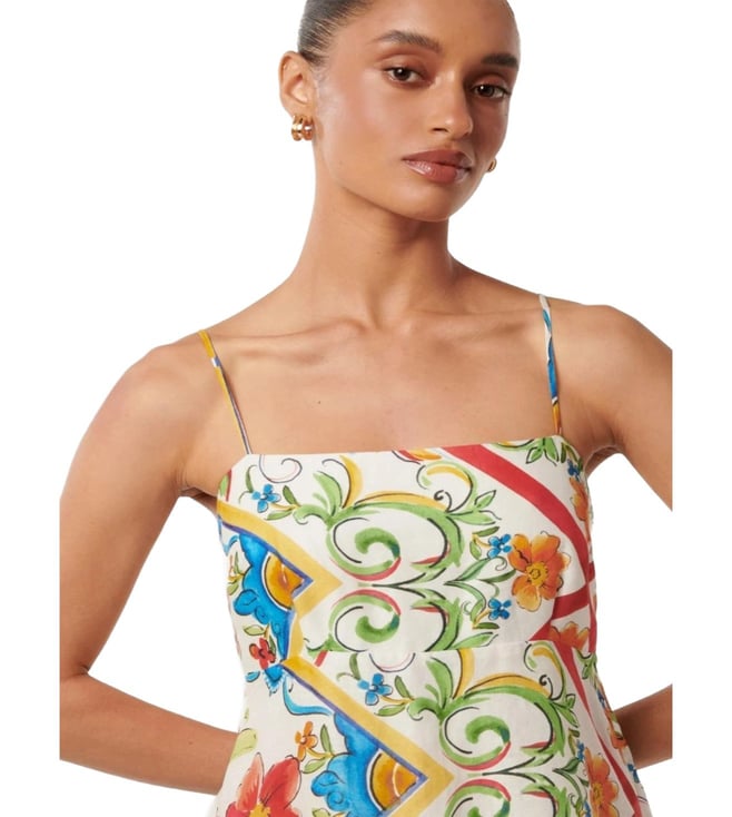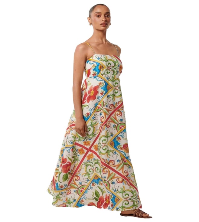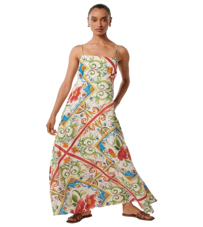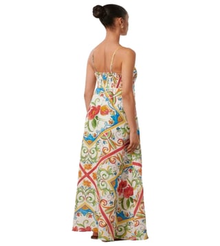 Elevate your summer style with the Forever New sundress, perfect for tropical getaways and leisurely weekends. Crafted from a lightweight linen blend, this vibrant dress features a square neckline, shirred back panel, and adjustable spaghetti straps for a comfortable fit. The long flowing skirt and waist seam create a flattering silhouette, while the zip fastening and lining add practicality. With a regular fit and highest point to hem length of 129.3cm, this dress is a musthave for your warmweather wardrobe. Feel effortlessly chic and cool in this timeless piece.