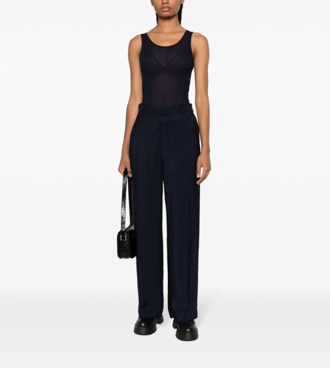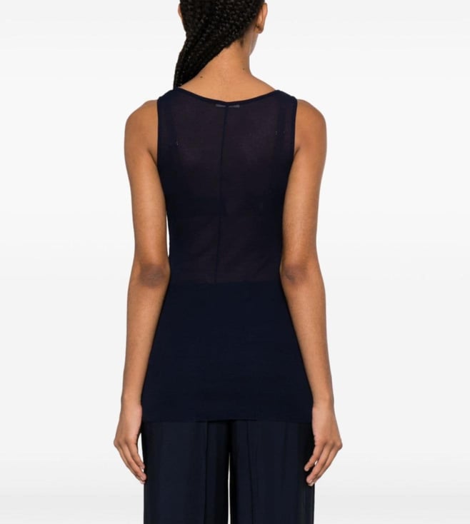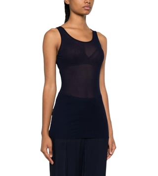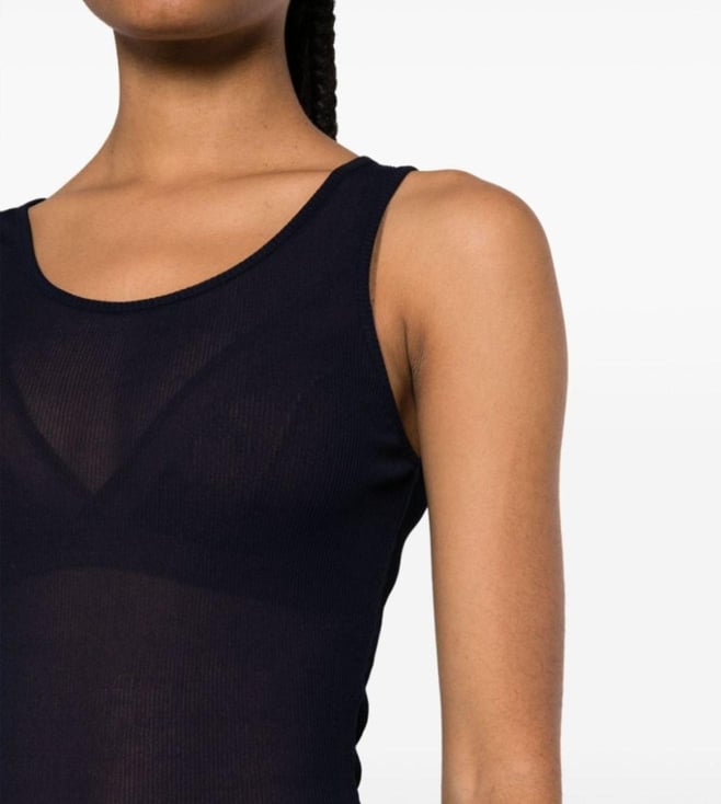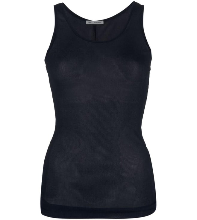 Ami Paris Dark Blue U-Neck Semi-Sheer Tank Top