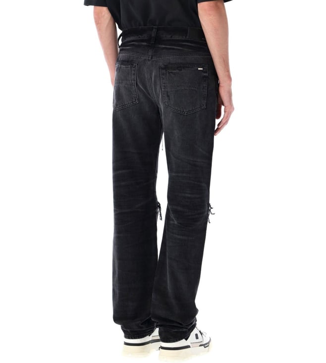 Elevate your style with the Amiri Black Distressed Loose Fit Jeans. Pockets, belt loops, button and fly closure, loose fit, logo details. Crafted for durability and comfort. Products purchased from Darveys are supported exclusively by the warranty/exchange policies of Darveys and its partner boutiques. Brand owners and their channel partners are not responsible for exchange/warranty services for items purchased through Darveys.