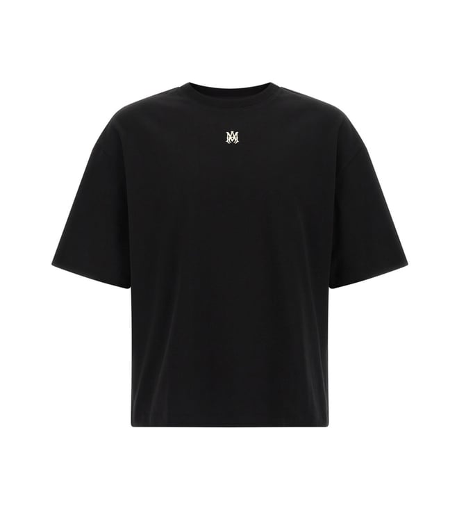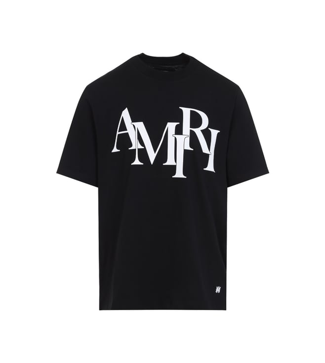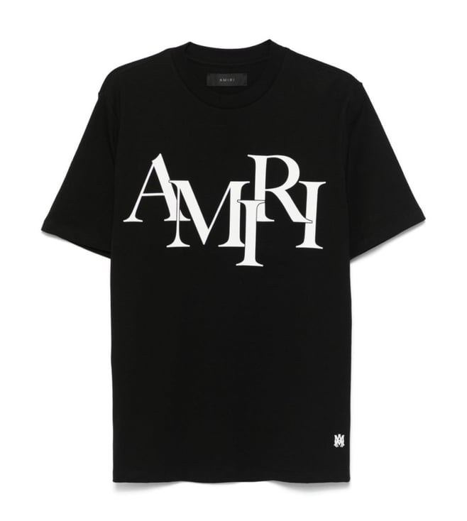 Black Cotton Staggered Logo T-Shirt